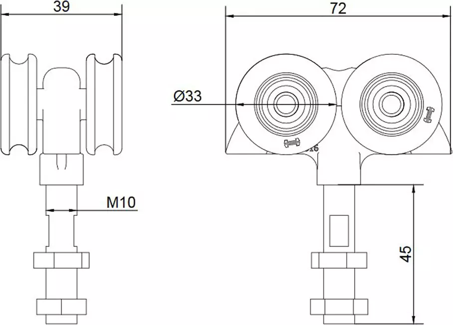 For top hung sliding doors up to 180kg
