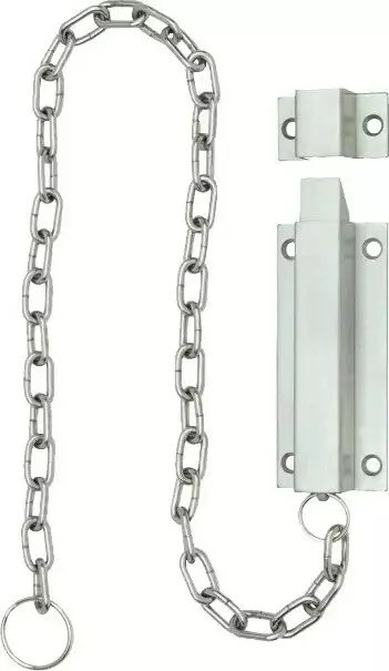The reversible bevelled bolt automatically latches and secures the door leaf when closed and is easily retracted utilising the attached chain.