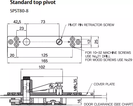 Suitable for door applications where a free swing pivot door is required. Consists of retractable top pivot set with heavy duty bottom pivot and strap.