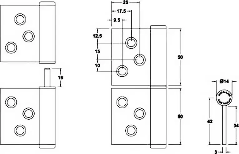 Please note - Universal hinges have a centre hinge pin & can not be used in conjunction with existing hinges with an off set pin